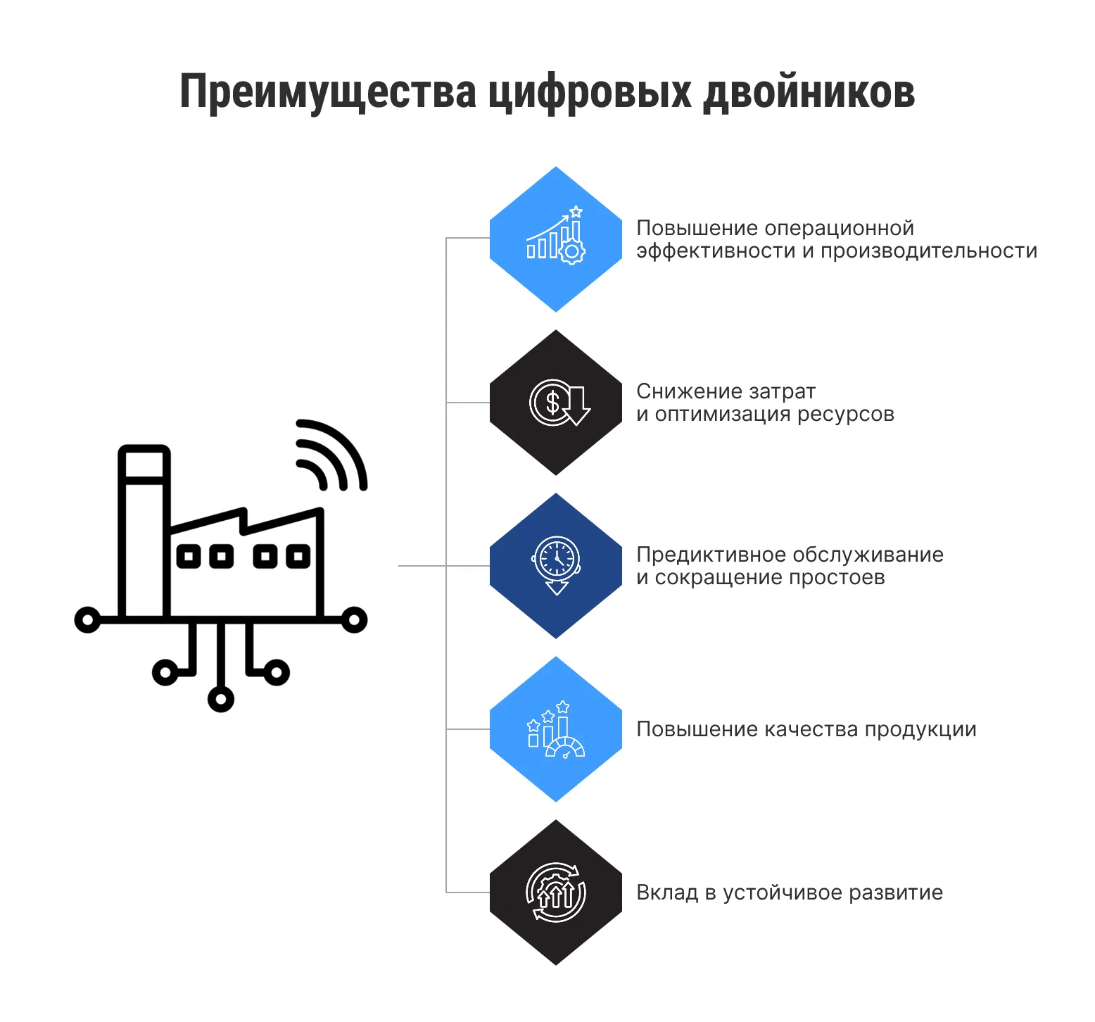 Рост рынка цифровых двойников обусловлен рядом ключевых факторов: